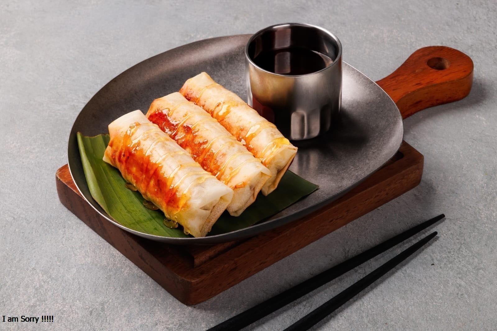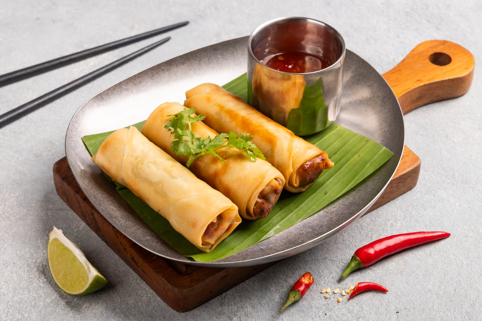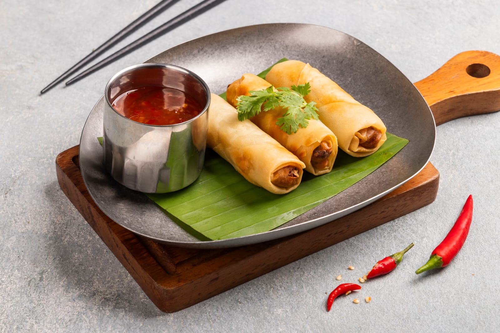 Crispy vegetable spring rolls served with sweet chili dipping sauce