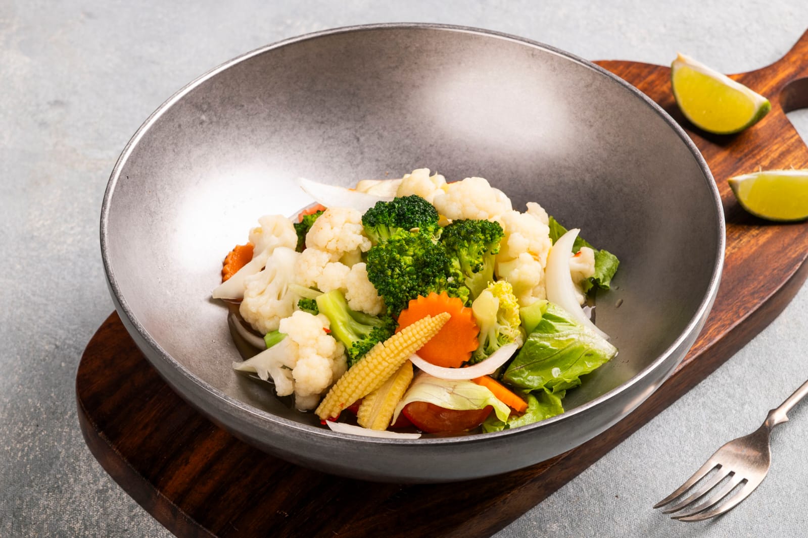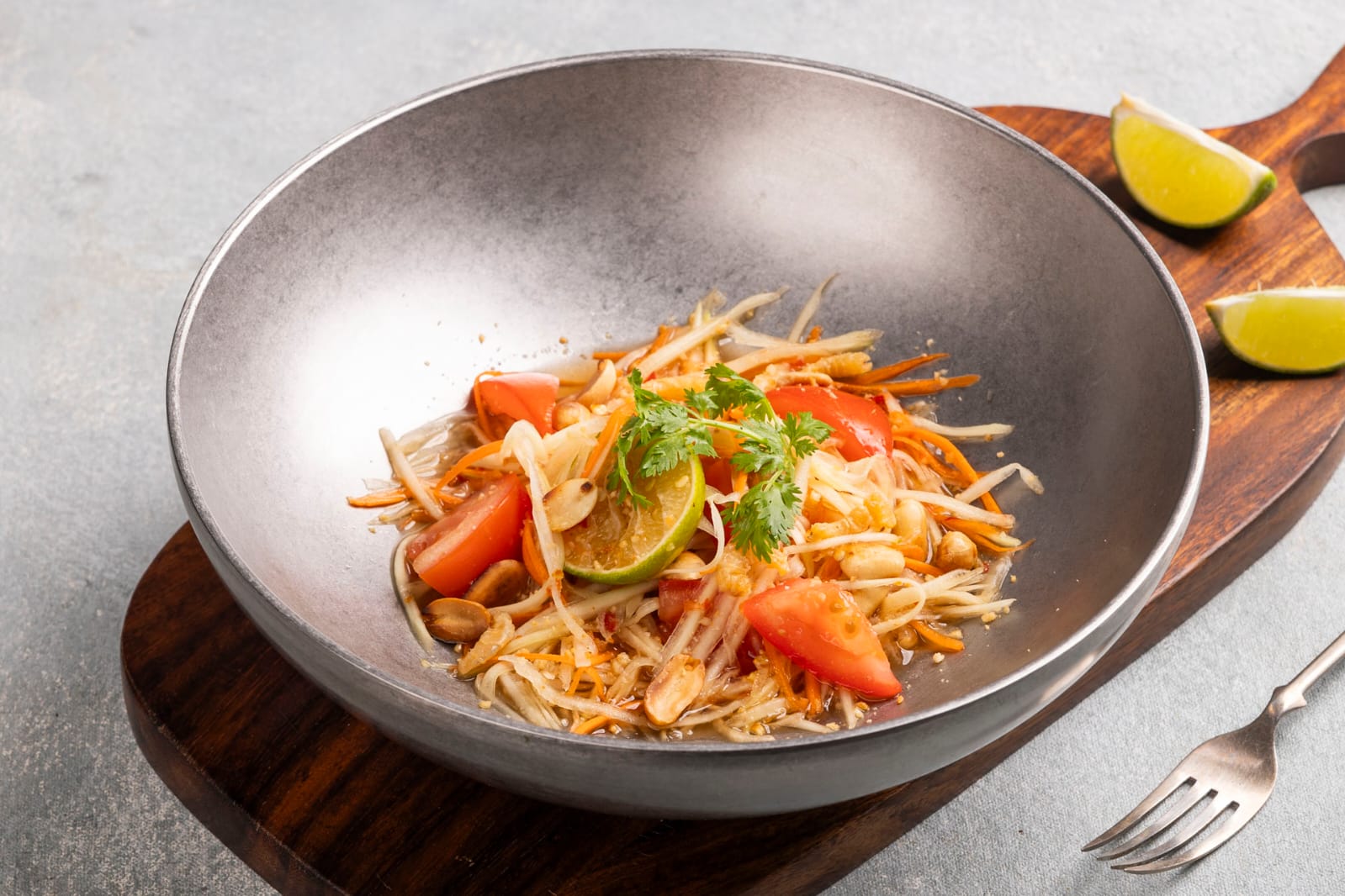 Thai-style mixed vegetable salad with tangy lime dressing (vegetarian)